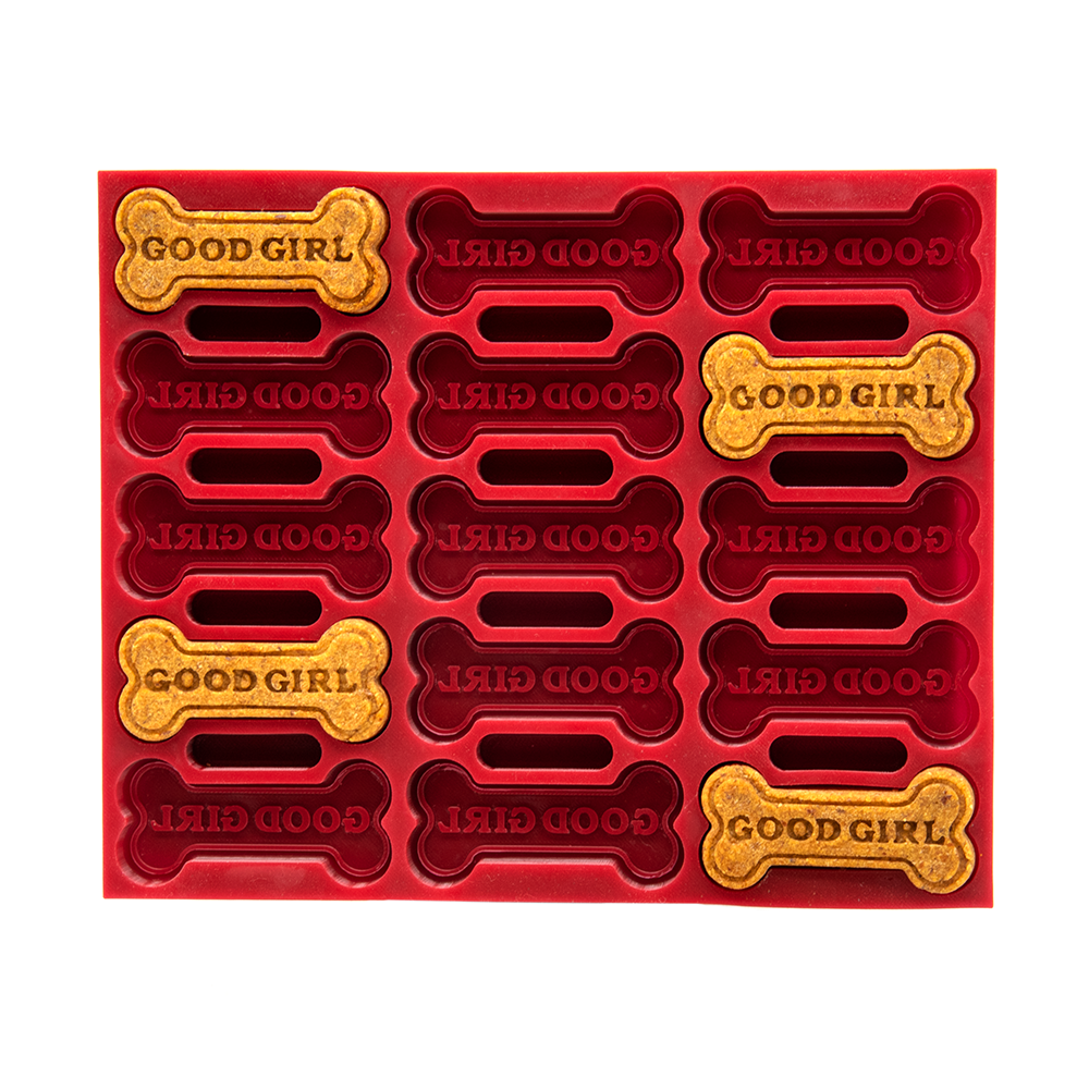 Choose the crimson red mold to make "Good Girl" biscuits, or make "Good Boy" treats in the navy blue mold.
